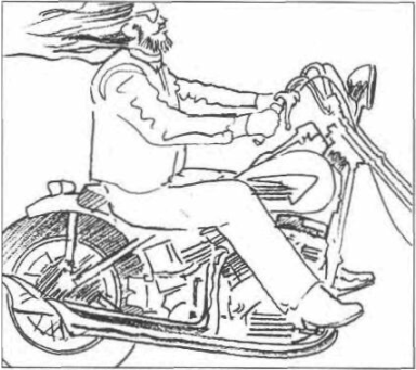 Most riders become anxious about being blown around in the wind and tighten on the bars. As the upper body is buffeted by the wind, it acts like a sail*. The bike is then being steered by the wind! Ride loose and low, and the wind’s effect on the bike is reduced by at least 75 percent.